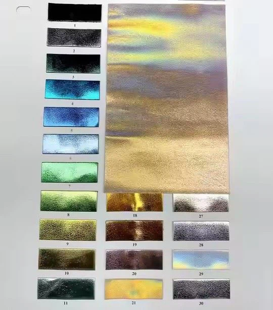 - Quando se trata de opções de cores, nossa espessura de atacado de alto teto de couro de grãos de ovelha metálico vem em uma variedade de tons metálicos impressionantes. De ouro e prata clássicos a ouro rosa e bronze da moda, há uma cor para se adequar a todos os gostos e estilo. O acabamento metálico adiciona um toque de glamour e sofisticação a qualquer projeto, tornando-o perfeito para criar roupas atraentes e itens de decoração doméstica.