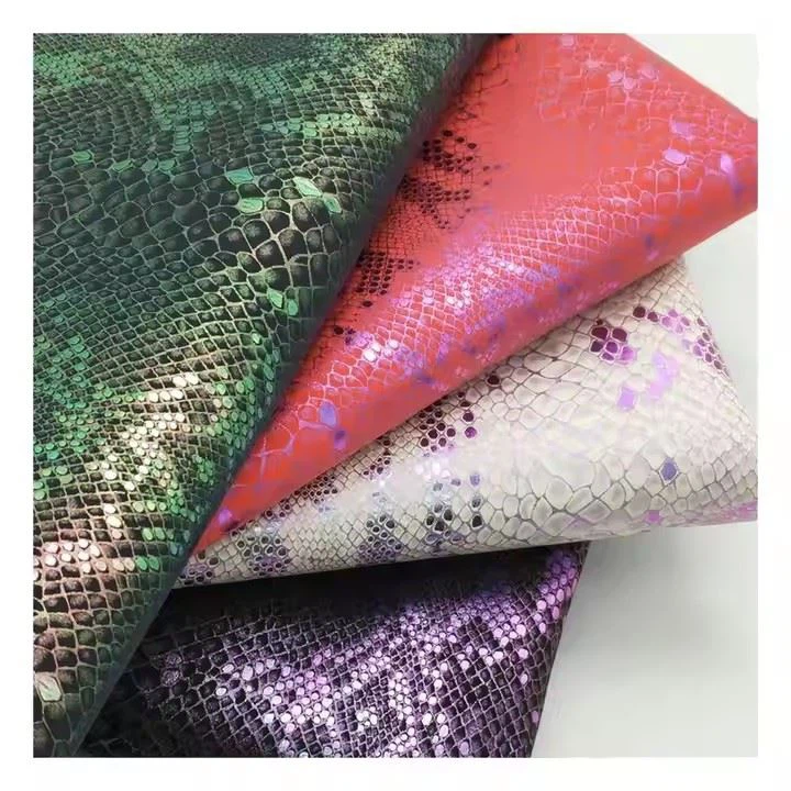 - Couro Faux PU sintético de alta qualidade de filmes shinny de filmes shinny é um material versátil perfeito para adicionar um toque de glamour a sapatos, roupas, chapéus e muito mais. Este couro falso personalizado não é apenas durável e fácil de trabalhar, mas também adiciona um brilho luxuoso e uma textura de pele de cobra única aos seus projetos.