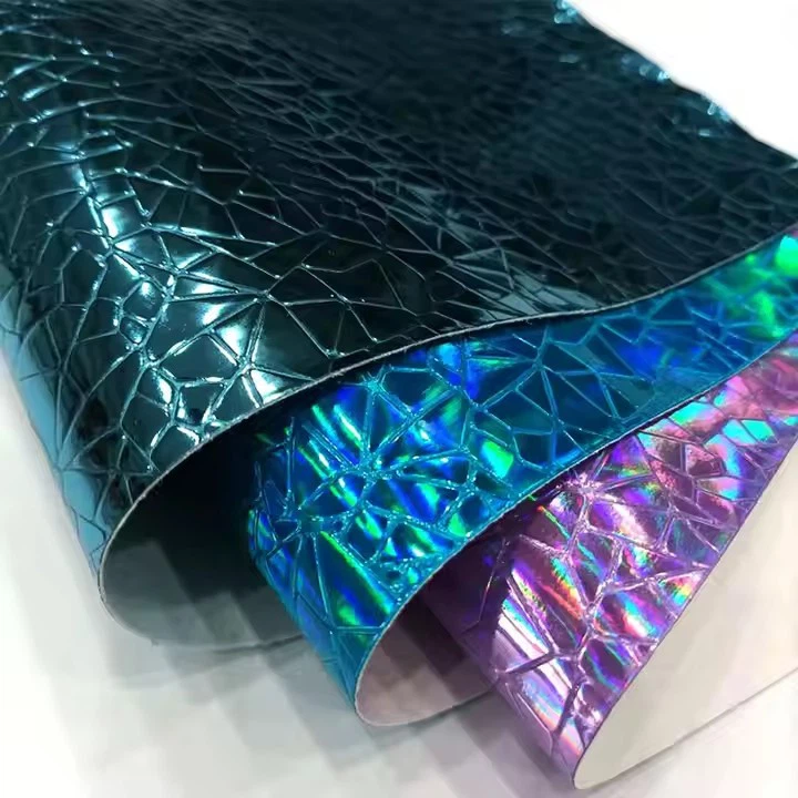 - O 0. 7mm de cor de couro sólido PU METAL METAL METAL METAL METAL EFEITO DE CAUSO GEOMÉTRICO PATTORNAL GEOMETRICO Couro artificial em relevo é um material impressionante que exala luxo e estilo. Este couro exclusivo combina a durabilidade do couro PU com um efeito espelhado de metal impressionante, criando um design visualmente atraente. O padrão geométrico gravado no couro adiciona profundidade e textura, aumentando ainda mais sua aparência elegante.